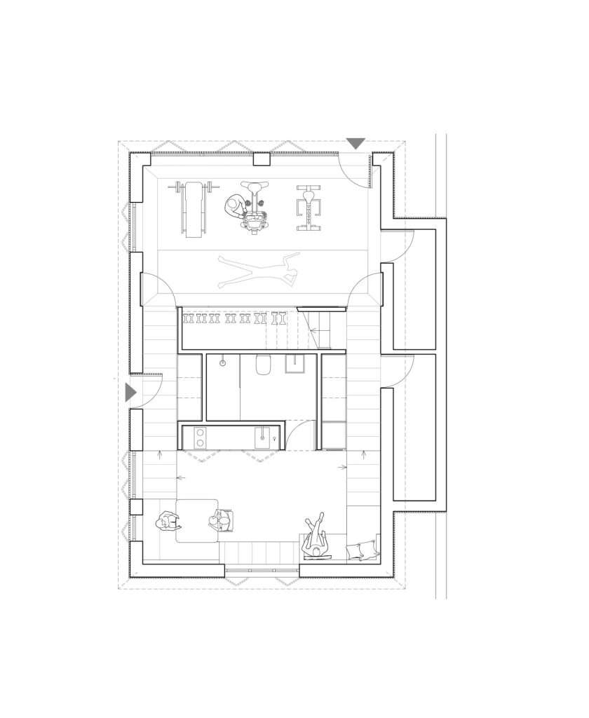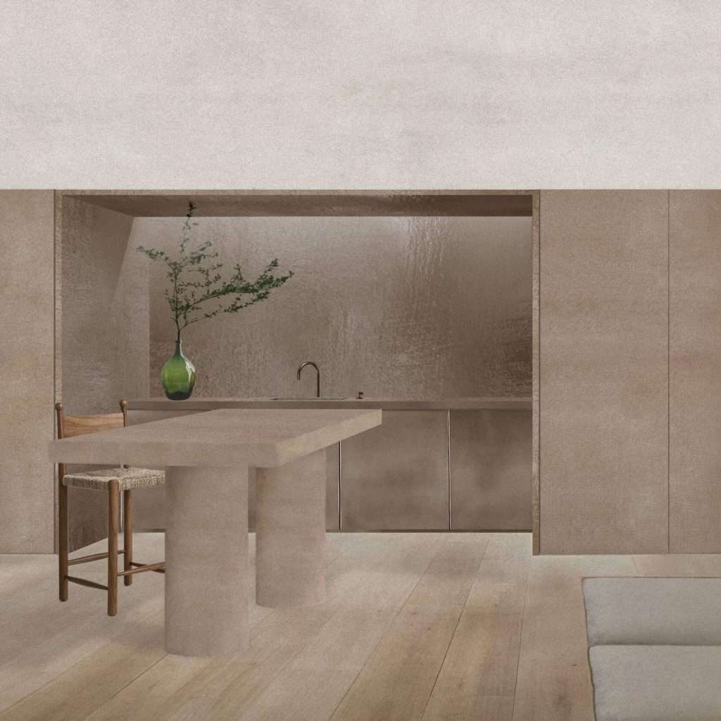 To achieve this, we will replace the existing roof of the garage with a new roof that would allow for the construction of a mezzanine. In both buildings, excavating works will enhance the quality of the interiors by providing more generous internal heights, as well as a more articulated layout featuring raised and sunken living areas. Strategically placed windows, a new bespoke bar made of exquisite materials and carefully chosen finishes will enhance the experience of inhabiting this country home throughout the year.